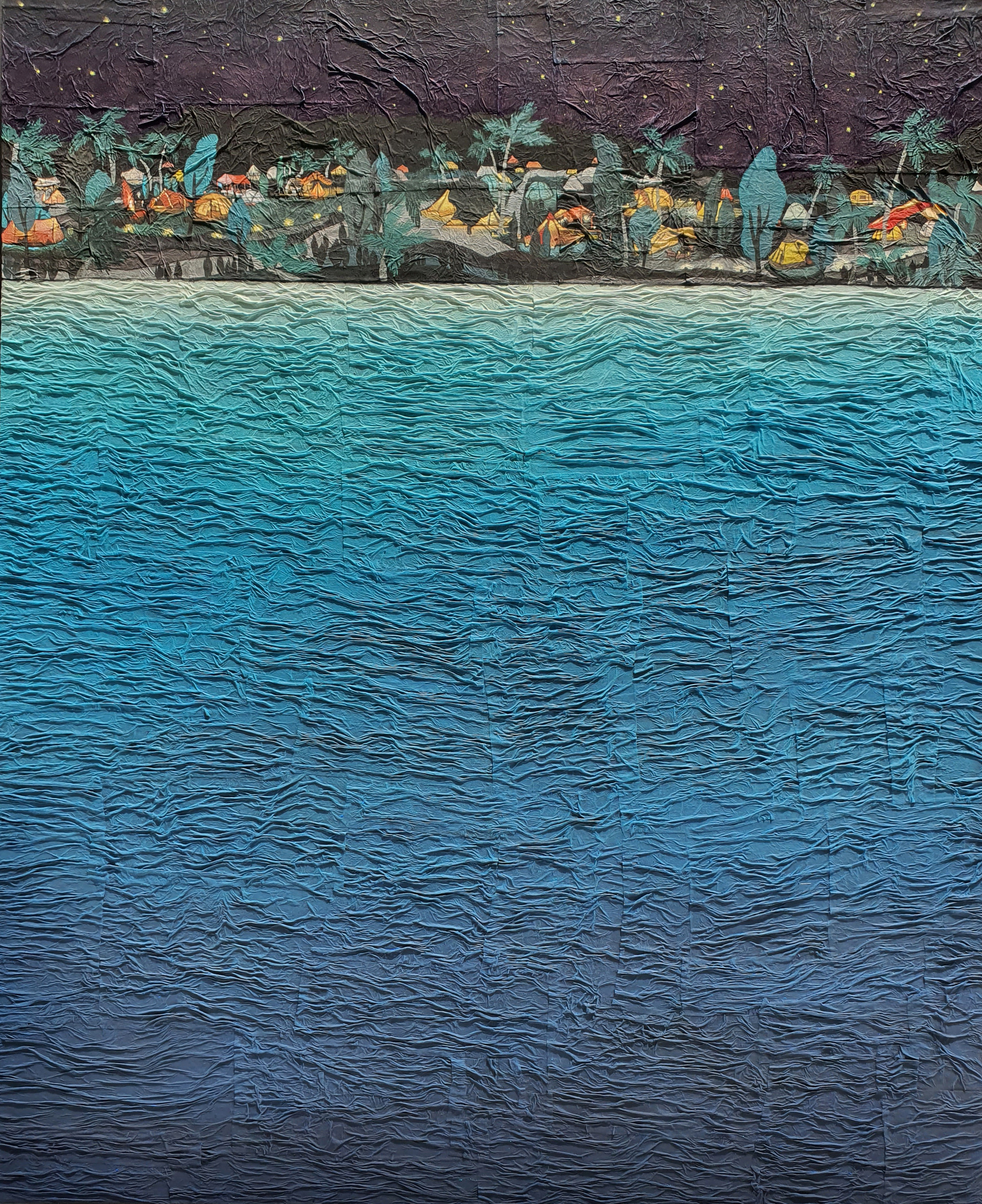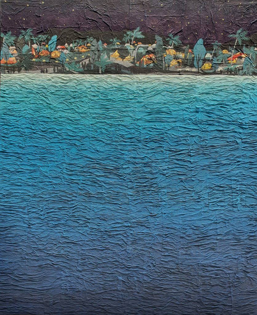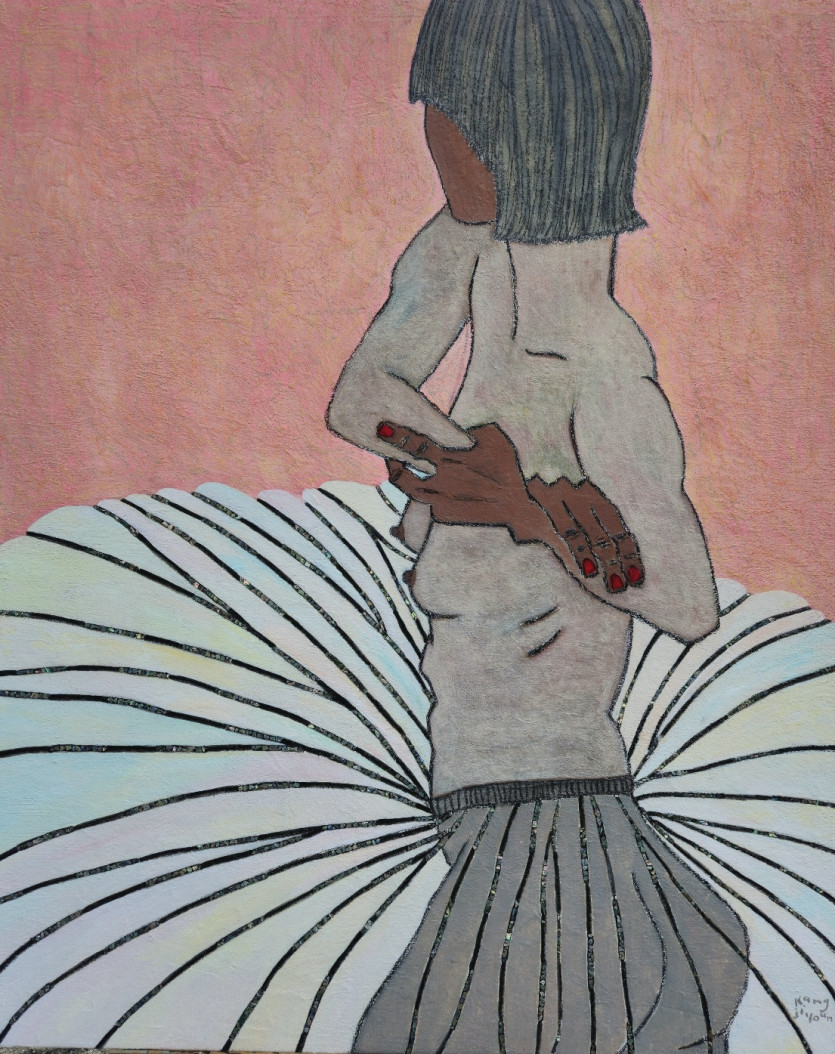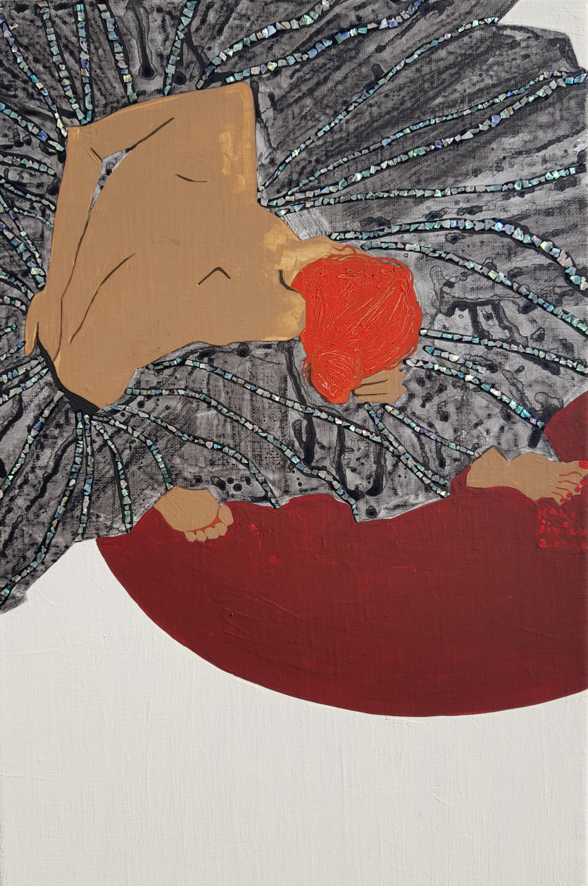 In her “Desire” series, mother-of-pearl is used not simply as ornamentation, but as a symbolic element revealing the dual nature of desire. The luminous surface of mother-of-pearl reflects both the pursuit of beauty and the yearning to transcend. Though the female figures adorned with mother-of-pearl appear radiant, they reveal the unbridgeable gap between ideal and reality. Her work questions how desire is shaped in contemporary society—how it is visualized, consumed, and compared.