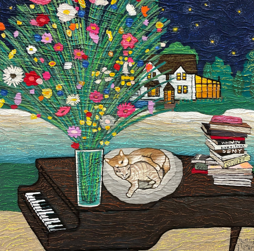 Kang Jiyeon focuses on the often-overlooked moments and objects that quietly stay by our side in the midst of repetitive daily life. Her work draws attention to things like unopened books, a silently breathing cat, a plant that has grown unnoticed, old colored pencils and worn brushes, or faded paints. These familiar elements, which seem to lose their presence over time, are reexamined and reinterpreted through her artistic lens. By revisiting everyday scenes, she brings forth the hidden stories and emotions embedded within, transforming the ordinary into something meaningful.