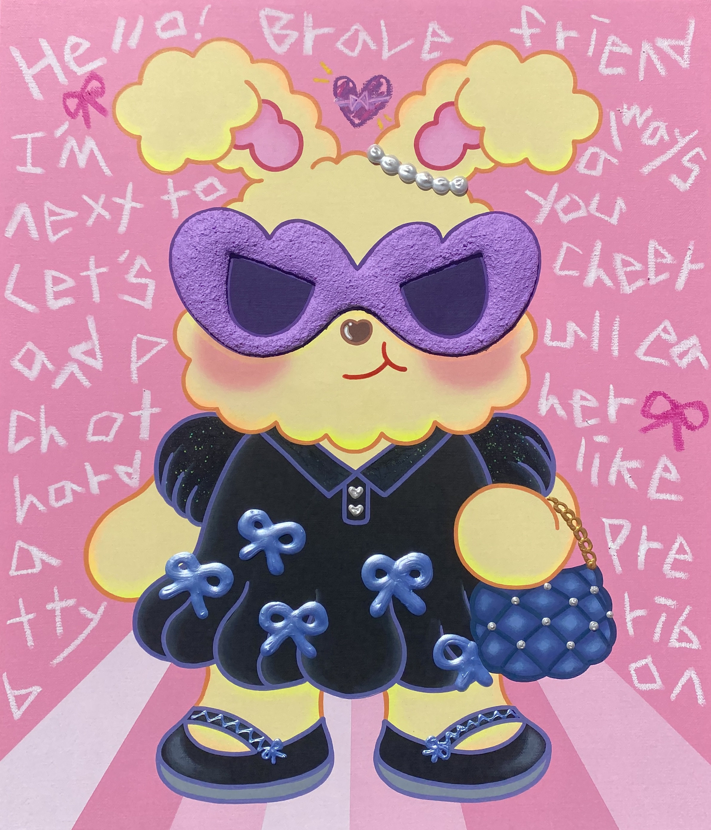 작품 속 캐릭터들은 완성된 존재가 아닌, 성장해 가는 우리의 모습을 닮아 있다. 어린 시절의 기억과 감정에서 출발한 이들은 작가의 내면을 투영한 존재로, 상처와 불안을 안고 살아가는 현실 속에서도 귀엽고 당당한 모습으로 앞으로 나아갈 수 있는 용기를 전한다. 가면 시리즈와 동물 시리즈의 캐릭터들은 히어로처럼 “나는 용감해”라고 말하며, 서로를 응원하는 존재로 나타난다.