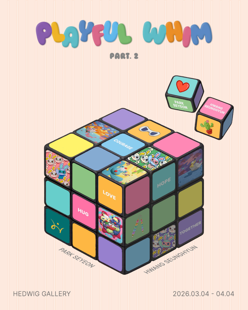 Playful Whim PART.2 stands as a record of emotions the two artists have continued to build and as a narrative of the relationships they have constructed together. The exhibition invites viewers to reflect upon their own emotions and rhythms, and to encounter the small courage discovered within relationships. What began in play remains as a warm consolation and a steadfast strength in contemporary life.