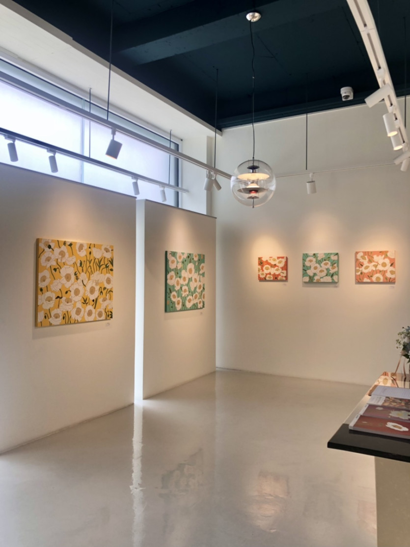 Summer-born painter, Jooha Sim, instinctively became interested in the poppy, a flower that blooms in the summer, and began to project her feelings on the flower and expressed them as works.